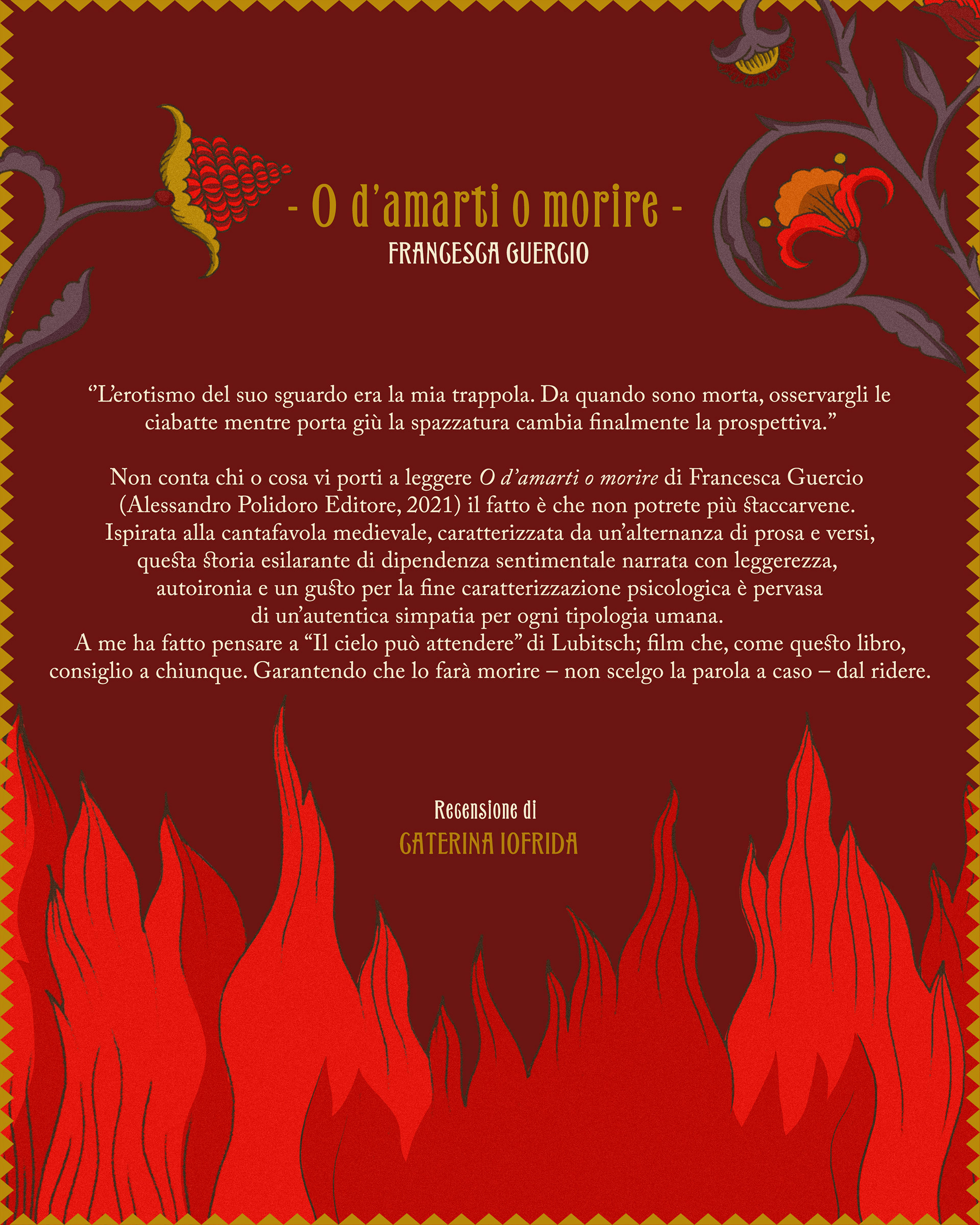 Book cover illustration and design of 'O d'amarti o morire' by Francesca Guercio commissioned by Yanez Magazine.