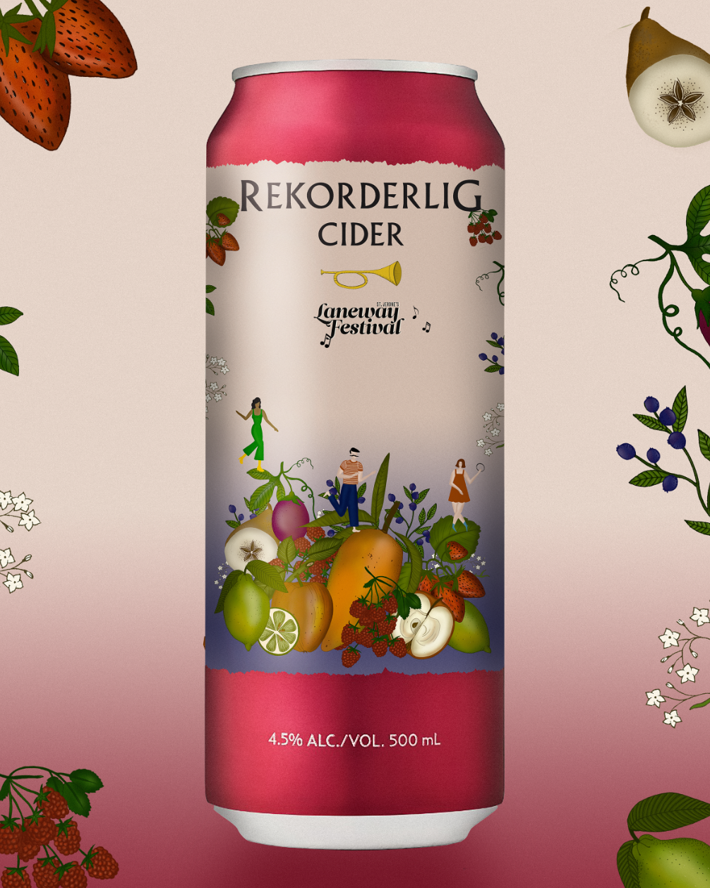 Illustration designs inspired by Rekorderlig fruity flavours and alternative Australian/New Zealand music festival, Laneway.
